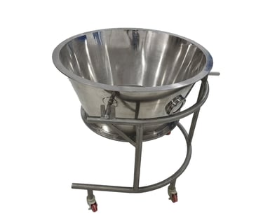 The Fluid Bed Dryer unit is made in two pieces, from S.S. 304 grade steel.